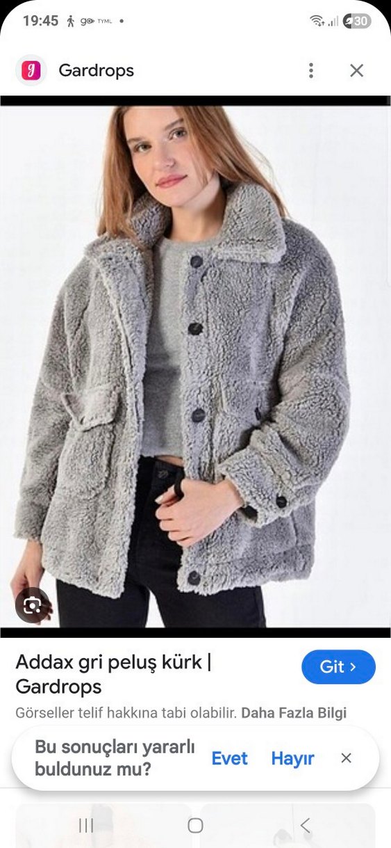 Addax gri peluş kürk ceket, uzun kollu ve geniş kesimdir. Yumuşak ve sıcak kumaştan, günlük sokak tarzı için uygundur.