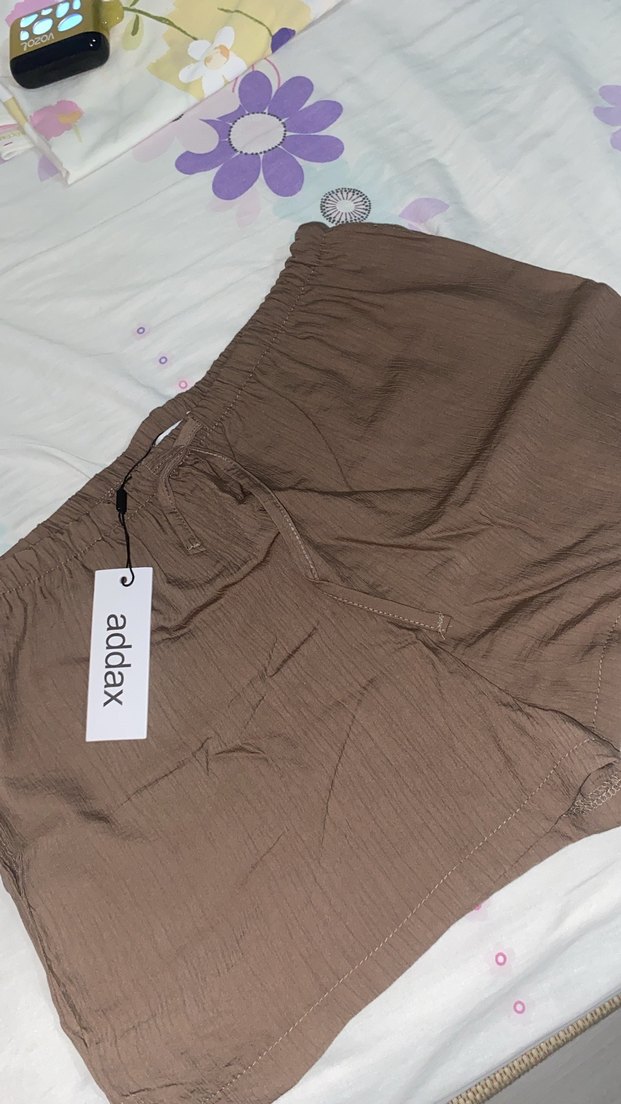 Addax markalı kahverengi keten şortu, kısa boy ve rahat lastikli bel ile günlük sokak stili için uygundur. Hiç kullanılmadı etiketli