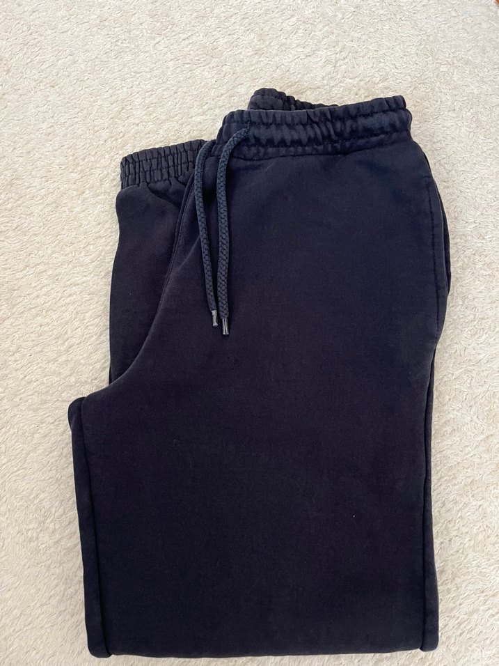 Lacivert renkte, rahat kesim ve lastikli bel ile bağcıklı kadın eşofman altı. Yumuşak kumaştan, günlük kullanım için sade ve şık görünüme sahip.