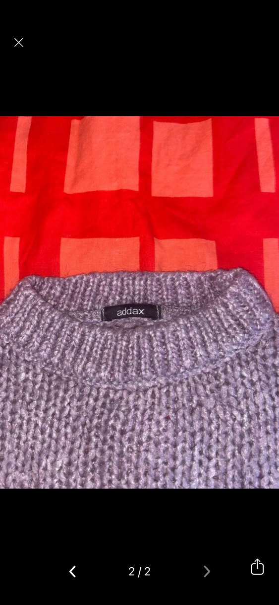 Addax markalı lila örgü yün kazak, yuvarlak yaka ve uzun kolludur. Rahat kesimi ve normal boyu ile günlük sokak modasına uygundur.