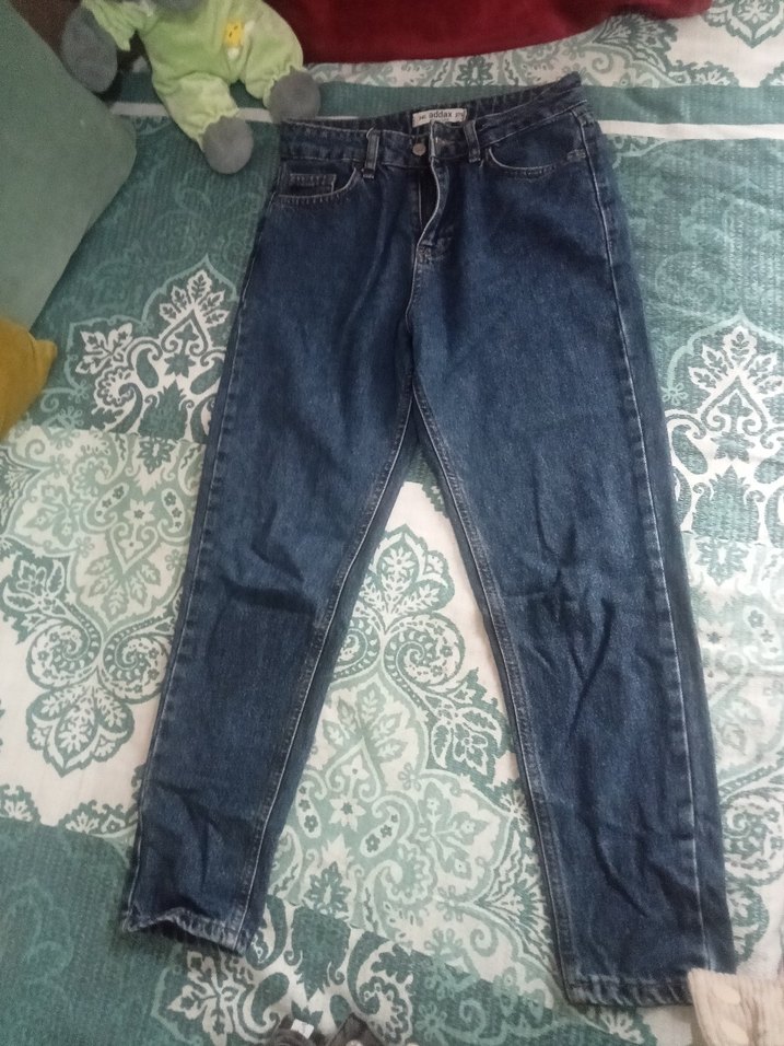Addax marka mavi denim kot pantolon düğmeli ve bol kesim, gündelik sokak stiline uygun.