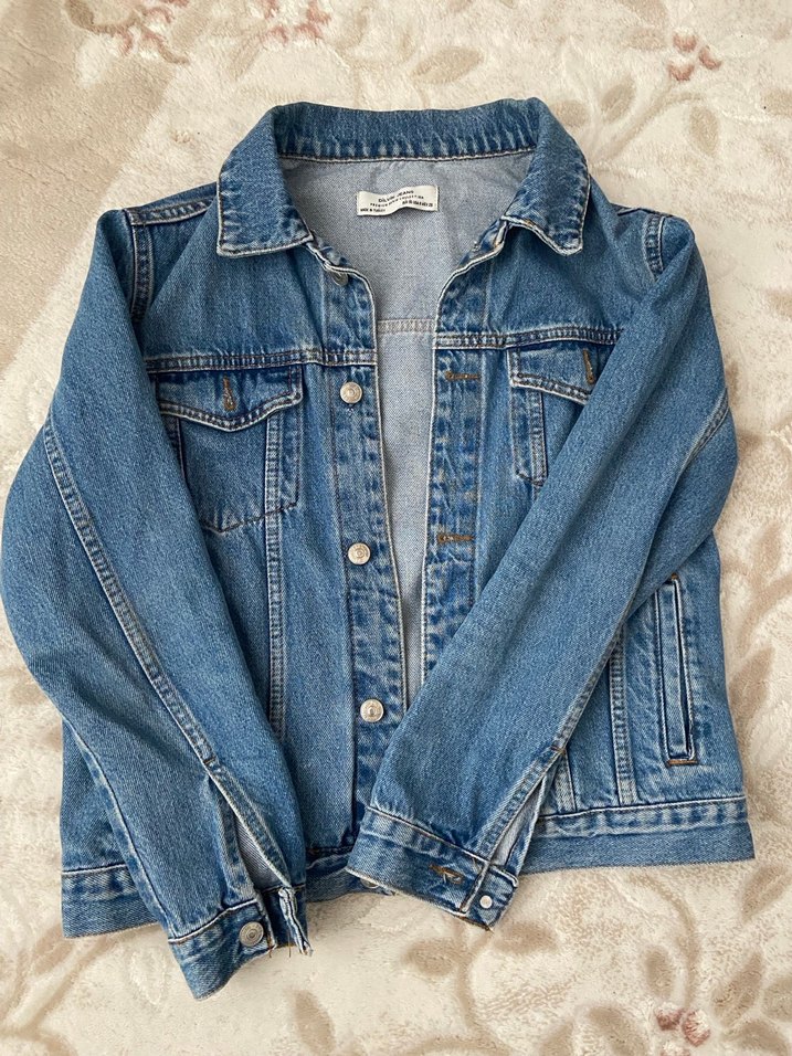 Düğmeli, uzun kollu ve yakalı mavi denim ceket. Salaş kesimi ve midi boyu ile günlük rahat sokak stiline uygun.