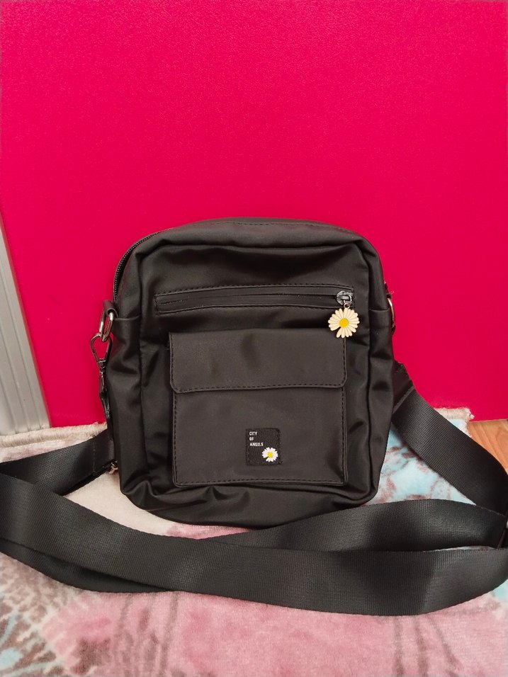Papatya Detaylı Siyah Omuz çantası. Ürünü alalı çok oldu ama neredeyse hiç kullanmadım. Dış kumaşı saten tarzı ve cok kolay silinebilir, leke tutacağını düşünmüyorum, tutsa da belli etmez. Askısı ayarlanabilir. En önde bir tane mıknatıslı küçük gözü, bir tane fermuarlı küçük gözü, bir de normal çantanın içinde küçük bir gözü var. Çok kullanışlı bir çanta. Son fotoğrafa eklediğim fermuar kısmındaki papatya çıkabiliyor ama takılı olduğu kısmı sıkıştırırsanız sorun yaşamazsınız. #addax #askılıçanta #siyahçanta #çanta #omuzçantası #papatya