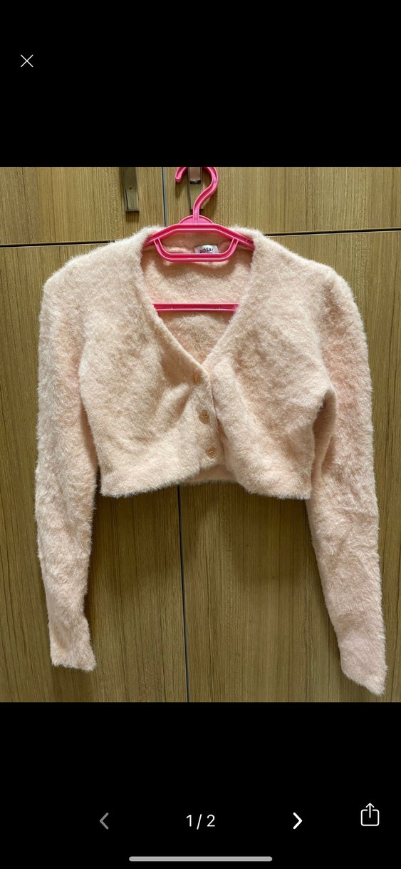 Kızlar için uzun kollu, fitted kesim, pastel pembe renkli yumuşak hırka. Hiç giymedim crop bir hırka