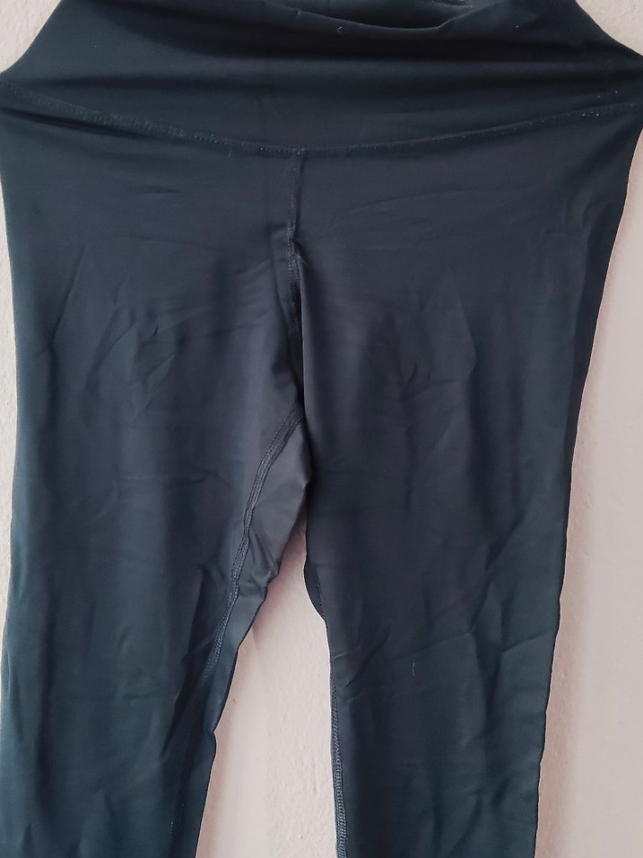 , yumuşak sentetik kumaştan, midi boy, vücuda oturan kadın spor taytı. Spor ve sokak stili için uygun.