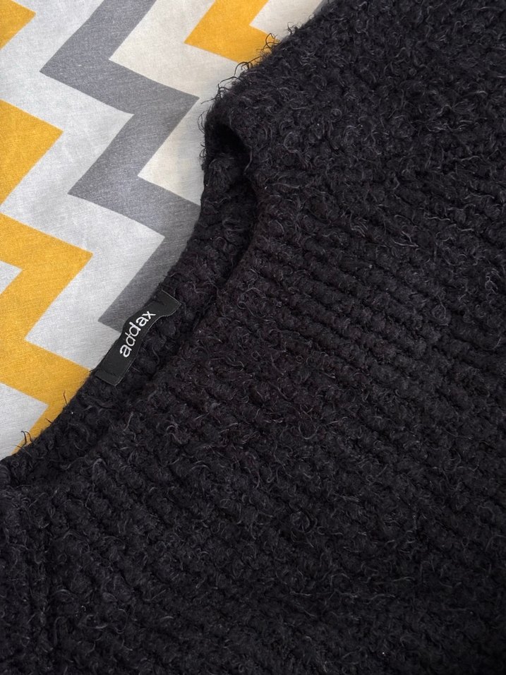 Addax markalı siyah renkli, örgü yün kumaştan yapılmış, yuvarlak yakalı, uzun kollu ve bol kesim kadın kazak. Rahat ve günlük kullanıma uygun. Bedeni xxs-s