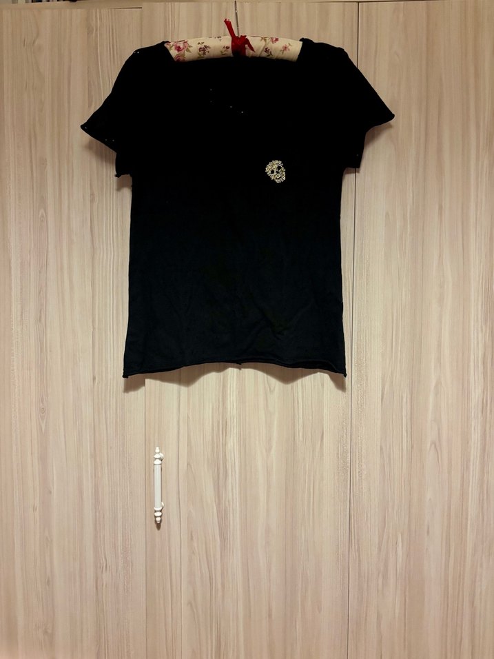 Siyah, kısa kollu, bisiklet yaka ve baskılı desenli fitted kadın tişörtü. İpeksi dokusuyla minimalist goth tarzını yansıtır, günlük kullanıma uygundur. Detaylarını fotoğraflara ekledim.