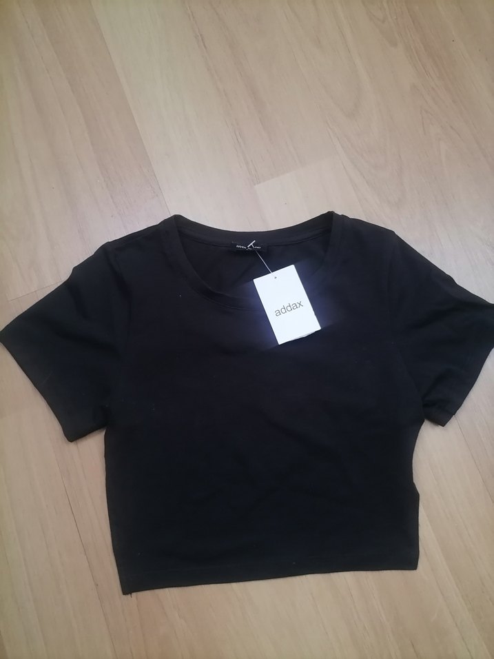 Addax markalı, pamuk kumaştan, kısa kollu ve yuvarlak yaka, baskılı siyah mini tişört, günlük şık sokak tarzı için uygundur. Etiketli sırt dekolteli. Etiketi L beden ama s, m uyumlu