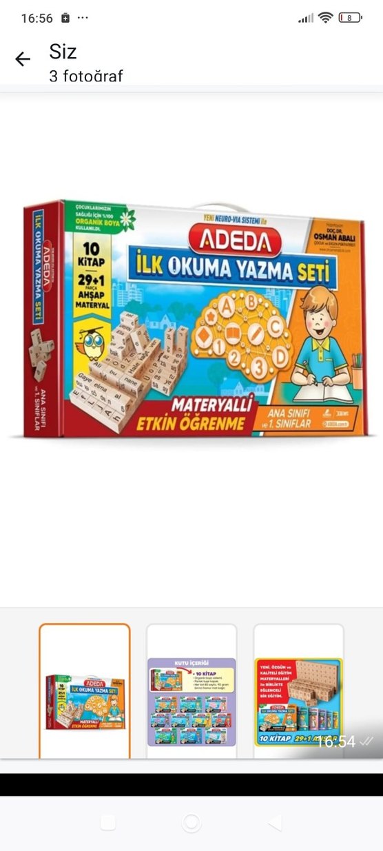 Adeda İlk Okuma Yazma Seti, ana sınıfı ve 1. sınıf öğrencileri için 10 kitap ve 29+1 ahşap materyal içerir. Organik boya kullanılarak etkin öğrenme desteklenir.1. kitap yapılmis olarak gönderilecektir. diğerleri hiç kullanılmamış tır.