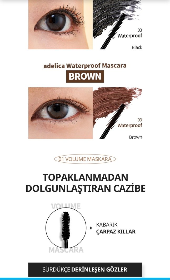 Adelica suya dayanıklı maskara, 8 ml (0,27 fl. oz) ürün içerir. Uzun süre kalıcı ve akma yapmaz.