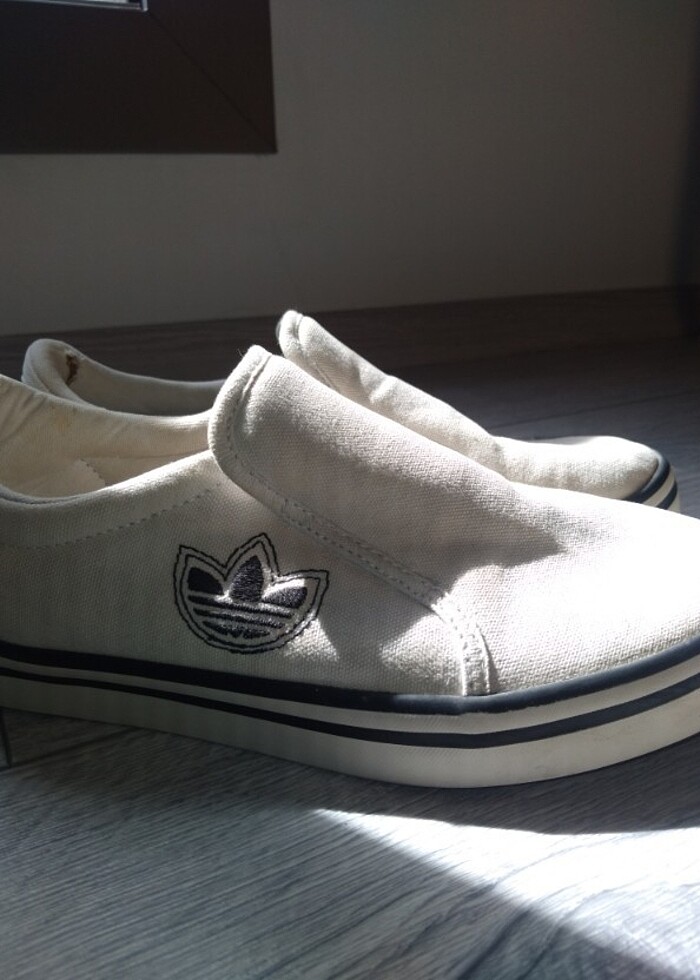 Adidas Beyaz Bağcıksız Ayakkabı Kargolarken ayakkabıyı yıkıyorum. Gönül rahatlığıyla giyebilirsiniz.