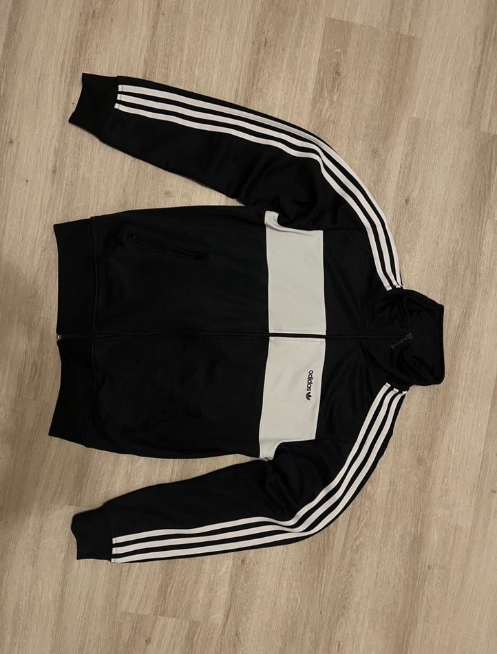 Adidas erkek ceketi, yüksek yakalı, fermuarlı ve uzun kolludur. Sentetik kumaştan, fit kesim ve baskılı detaylara sahip, dış mekan kullanımı için uygundur. Siyah renktedir ve Adidas logosu ile şeritleri bulunur.