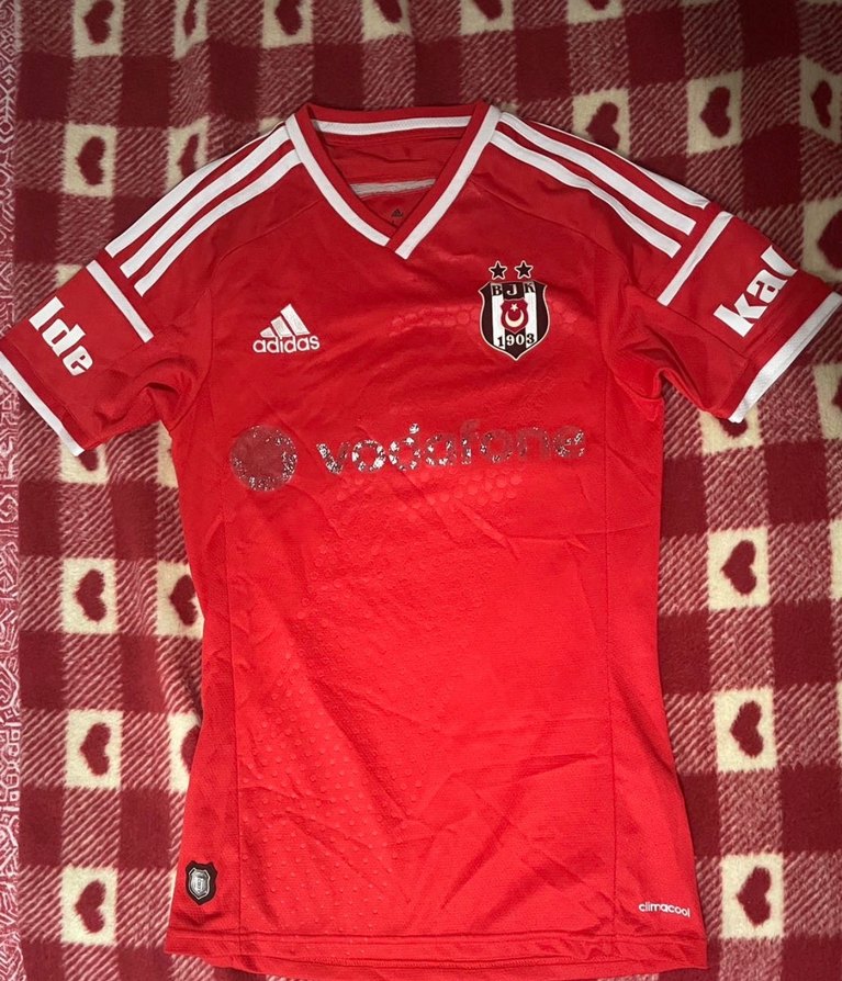 Beşiktaş’ın 2014-2015 sezonuna ait, koleksiyon değeri taşıyan orijinal kırmızı formasını satışa sunuyorum. Sezon: 2014-2015 Marka: Adidas (Orijinal logoludur) Teknoloji: Climacool (Hava alan özel kumaş yapısı) Sponsor: Göğüs kısmında Vodafone, kollarında ise Kalde reklamları bulunmaktadır. Durum ve Kusur Bilgisi: Formanın kumaşı, Beşiktaş arması, Adidas logosu ve kol kısımlarındaki Kalde reklamları genel olarak iyi durumdadır. Ancak, göğüs kısmındaki 'Vodafone' sponsor baskısında zamanla kullanıma/yıkamaya bağlı belirgin silinme ve yıpranma mevcuttur. Lütfen bu detayı fotoğraflardan inceleyiniz. Beden: Xs