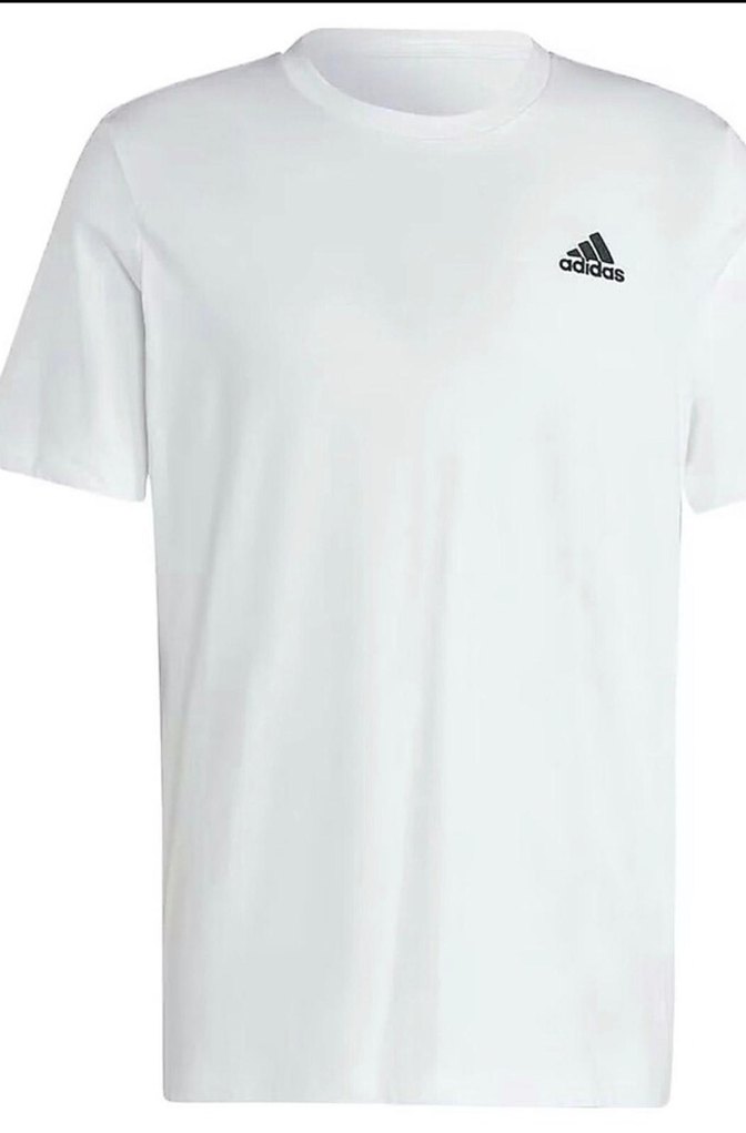 Adidas marka, pamuk kumaştan beyaz, kısa kollu, bisiklet yaka, baskılı logolu, spor ve sokak stiline uygun erkek tişörtü.