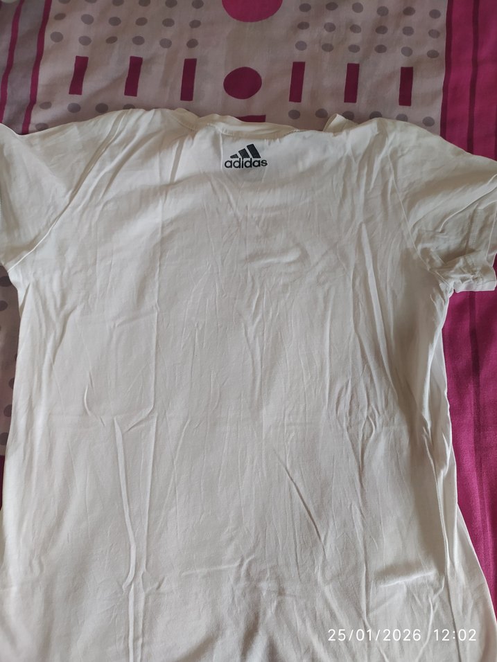 Adidas beyaz kadın tişört, pamuklu kumaştan, kısa kollu ve yuvarlak yaka. Rahat kesimiyle spor ve günlük şıklık sağlar.