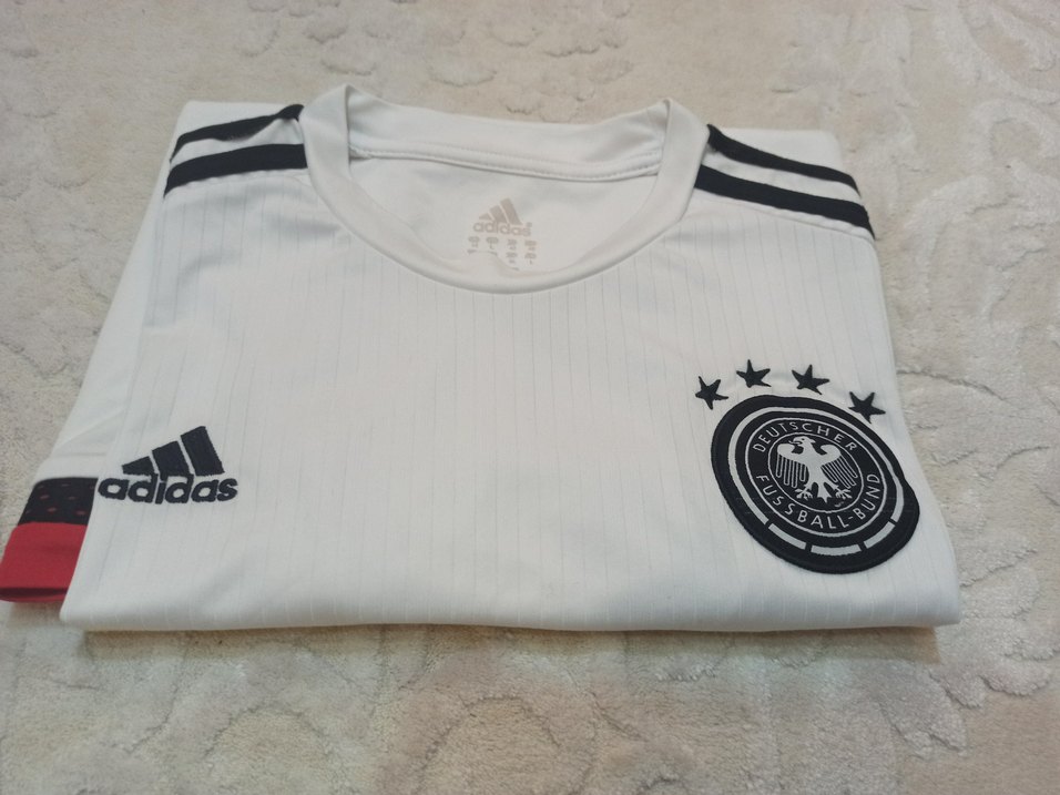 Adidas erkek forması, beyaz renkte, kısa kollu ve bisiklet yaka ile tasarlanmıştır. Nefes alan terletmeyen kumaştan üretilmiş, gri baskılı detaylar içerir.. ⚽ En 48cm, boy 67cm dir.