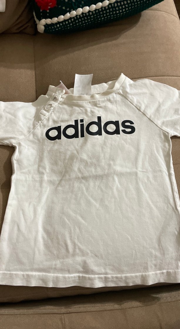 Pamuklu, beyaz, kısa kollu, düğmeli ve baskılı adidas logolu çocuk tişörtü. Dar kesimi ve bisiklet yaka ile rahat bir sokak stili sunar. 12-18 ay için uygundur.