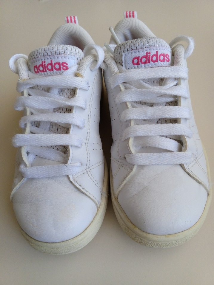 Beyaz Adidas kız çocuk sneakers, cırt cırtlı ve bağcıklı, kauçuk tabanlı, pastel tonlarda, desen içermeyen rahat sokak stili ayakkabı.