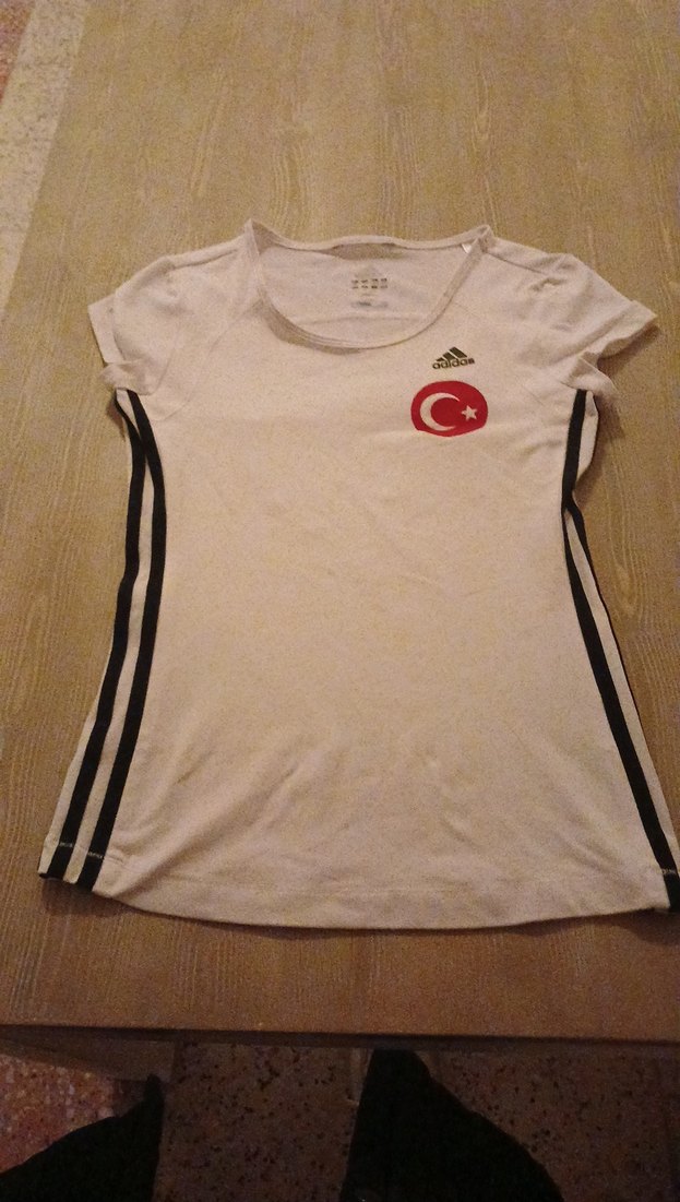 Adidas beyaz pamuklu kısa kollu tişört, bisiklet yaka ve baskılı detaylara sahip. Spor ve günlük kullanım için uygun, ayarlanabilir cırt cırtlı özellik içerir.