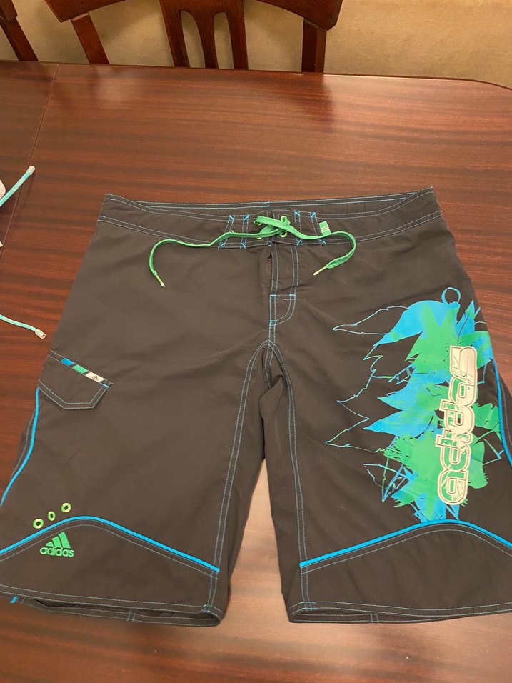 Bol kesim, lacivert, baskılı desenli, kemerli mini uzunlukta erkek şort mayo. Plaj için uygun, trend bir günlük tarz sunar. Parmağımla gösterdiğim yerde dikişde atma var açılma yok ama ..