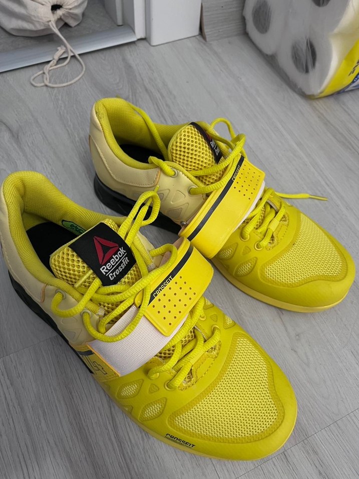 Sarı renkte, wedge topuklu erkek spor ayakkabısı. Velcro bantlı ve baskılı detaylara sahip, dayanıklı kauçuk malzemeden üretilmiştir. Hiç kullanılmamıştır