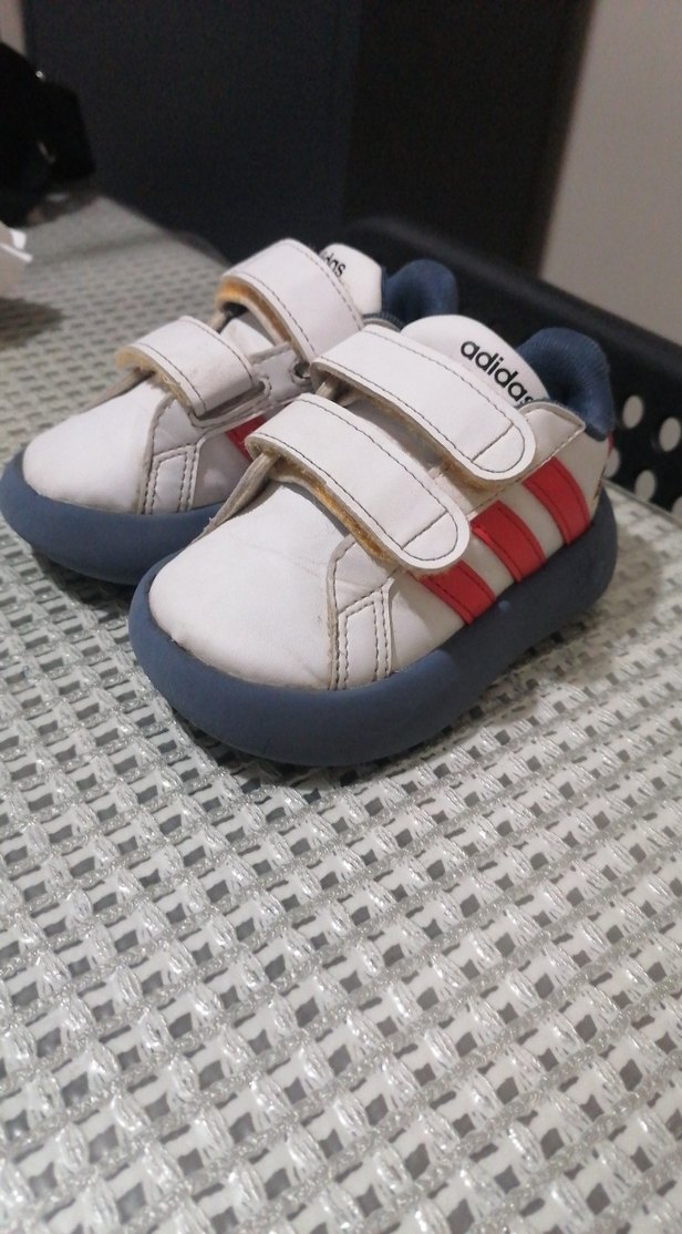 Adidas erkek çocuk spor ayakkabısı, cırt cırtlı, kauçuk tabanlı, renkli baskılı ve sokak tarzına uygun.