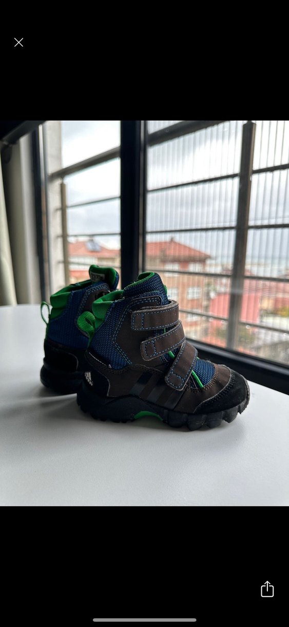 Koyu kahverengi baskılı kauçuk bot, erkek çocuklar için Velcro bantlı. Trendy ve rahat sokak stili için dayanıklı tabanlı.