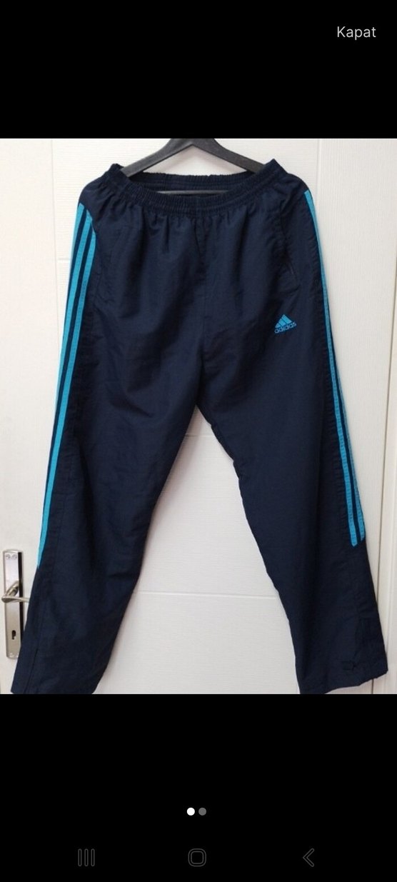 Adidas marka, sentetik kumaştan üretilmiş, regular fit ve cırt cırtlı koyu lacivert erkek spor eşofman altı. Athleisure ve sokak tarzına uygun.