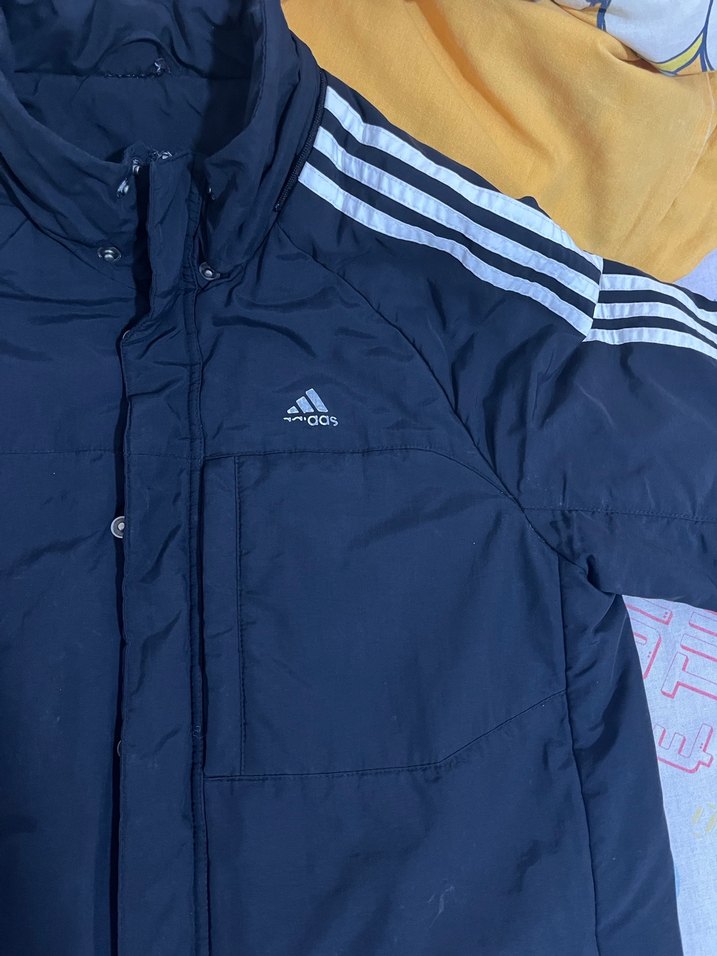 Erkek lacivert mont, fermuarlı ve yakalıdır. Uzun kollu, normal uzunlukta ve dar kesimdir. Yumuşak fleece kumaştan üretilmiş, omuzlarda beyaz şeritler bulunur.