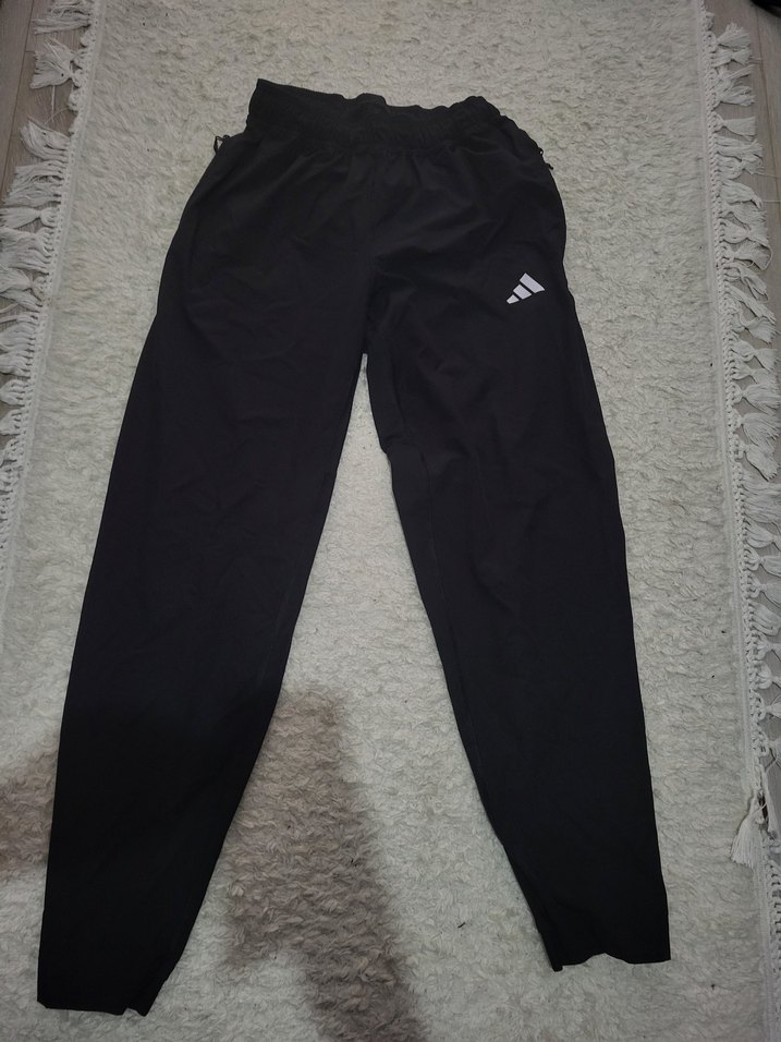 Siyah, sentetik kumaştan üretilmiş, rahat kesim erkek outdoor eşofman altı. Spor ve sokak stiliyle midi boyda, rahat kullanım sağlar. az kullanılmıştır.