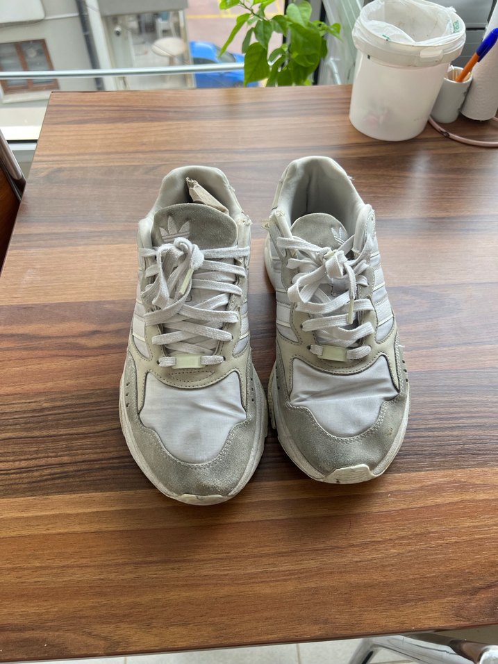 Ürün fotoğraflarda görüldüğü gibidir. Kesinlikle orijinaldir. Adidas mağazasından satın alınmıştır. 44 numaradır. Kullanım kaynaklı üründe deformeler yıpranmalar mevcuttur o yüzden fiyatını uygun tutuyorum. Şu an internetteki satış fiyatı en ucuz 2300 liradır.Son 2 fotoda deformelerini görebilirsiniz. Ürün Modeli :Adidas Retropy F90 Beyaz Erkek Spor Ayakkabı HP6366