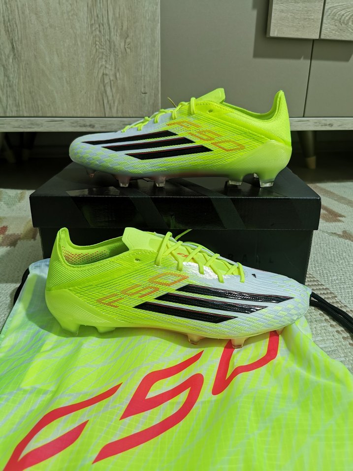 Erkek futbol ayakkabısı, bağcıklı ve baskılı desenli, sarı renkli. Kauçuk tabanlı, sportif ve çağdaş tasarımlı. Trend belirleyiciler için uygundur. ⚽