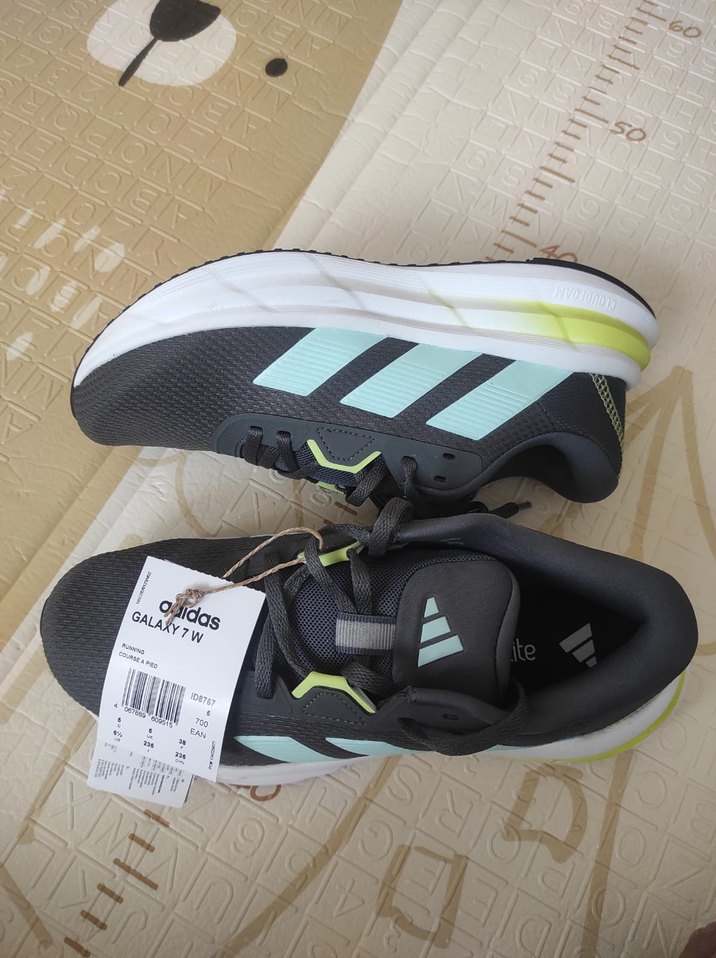 Adidas Galaxy 7 W gri kadın spor ayakkabısı, kauçuk tabanlı ve baskılı desenli, trend sokak stili için uygundur.