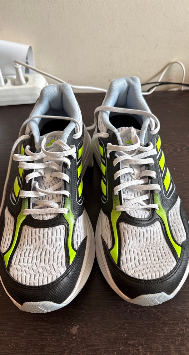 Gri ve beyaz çizgili, bağcıklı erkek spor ayakkabıları, neon canlı detaylarla hareketlendirilmiş. Kauçuk tabanlı, rahat ve dayanıklı sokak stiline uygun. Ürün alindigindan beri hiç kullanilmadi. Tamamen tertemizdir. ihtiyaç fazlaligindan dolayi satiyorum