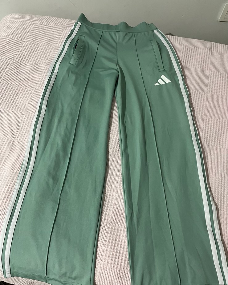 Bir iki kere giyildi boyu kısa geliyor rahat esnek kumaş Pastel yeşil renkte, pilili ve salaş kesime sahip eşofman. Yumuşak sentetik kumaştan, yan cepli ve beyaz şerit detaylı, spor sokak stili için uygun. ♀️