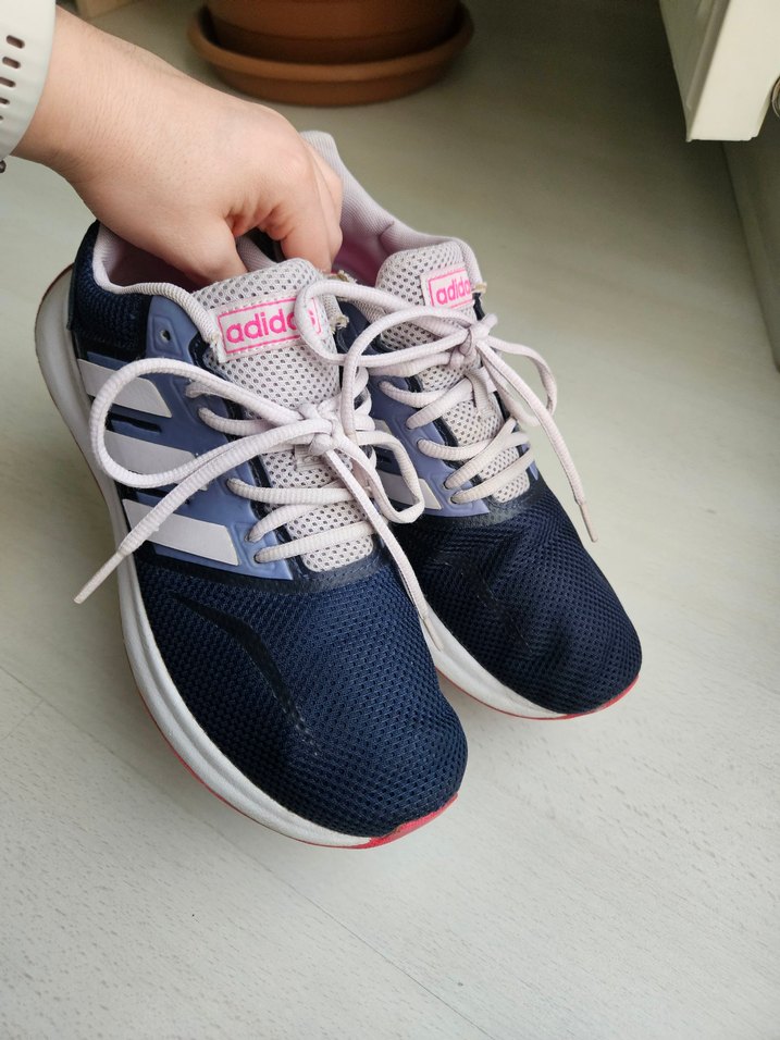Adidas kadın lacivert bağcıklı spor ayakkabı, rahat kauçuk tabanlı az kullanıldı iç kısımlarında sürtünmeden kaynaklı deformeler olmuştur fotoğraflarda mevcuttur Pazarlık yapılır