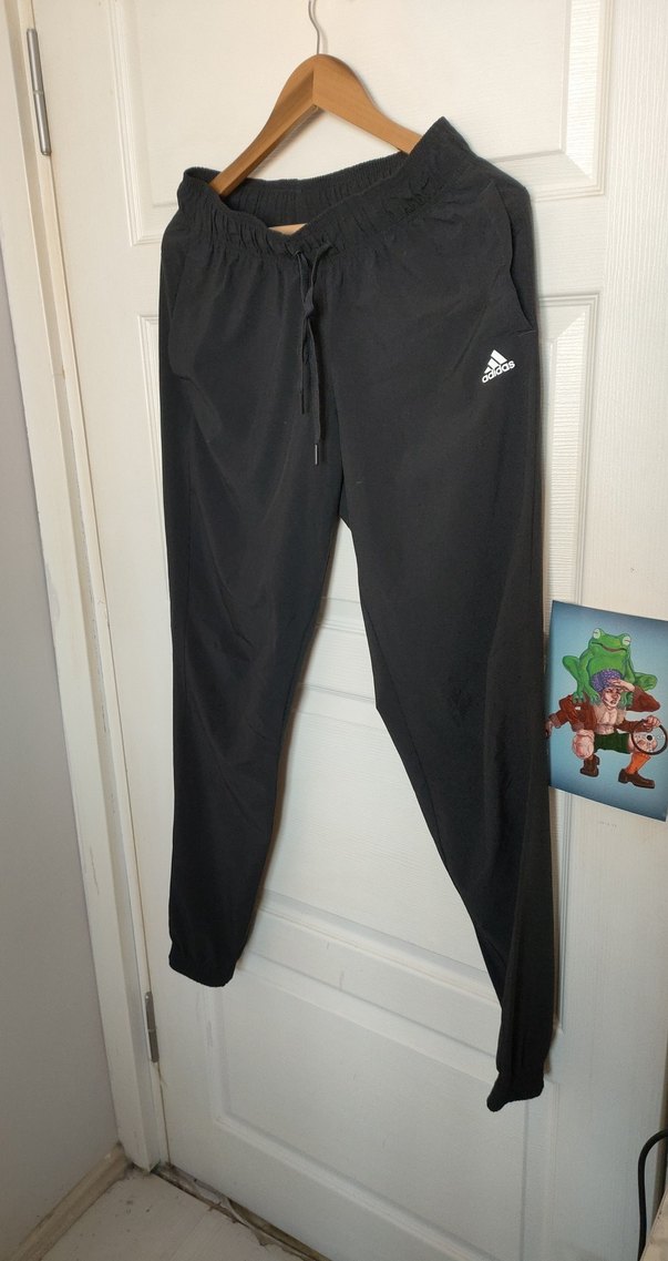 Adidas siyah kafın eşofmanı, rahat kesim ve fermuarlı ceplerle, sentetik kumaştan, baskılı desene sahip, sokak tarzı için uygun.