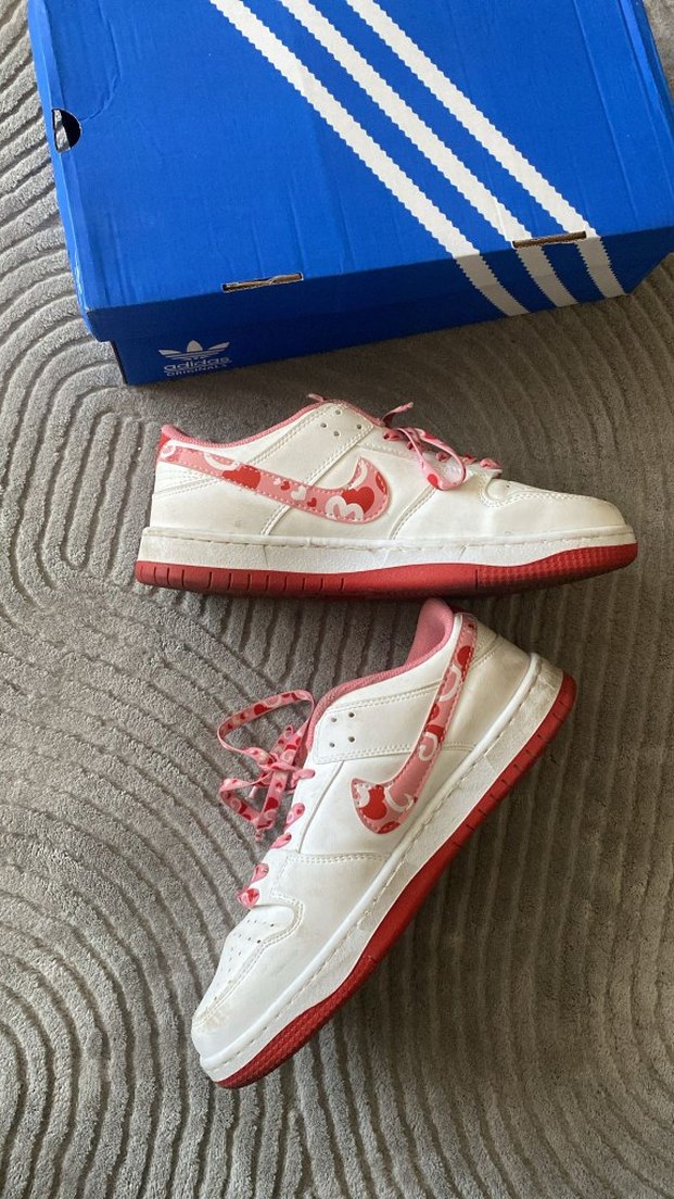Adidas kadın spor ayakkabısı, kırmızı beyaz renklerde, bağcıklı ve blok topuklu tasarıma sahip. Kauçuk tabanlı, spor ve günlük kullanım için uygun.