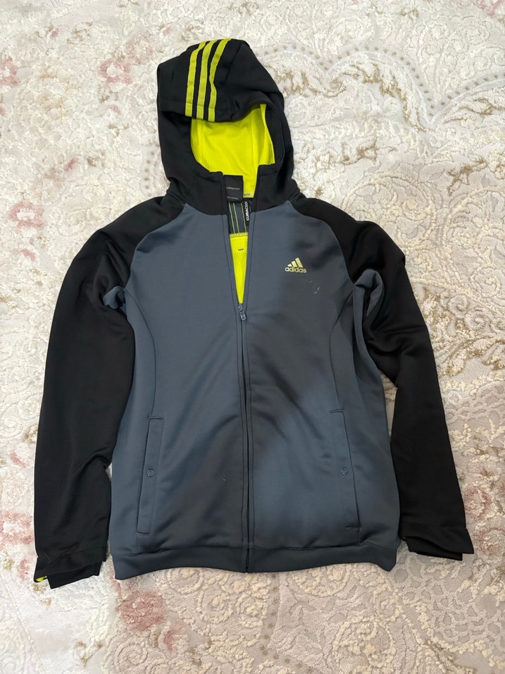 Adidas fermuarlı kapüşonlu sweatshirt. Günlük kullanım için idealdir. Oldukça şık bir ürün. Defosu bulunmamaktadır. En:47 Boy:61 #adidas #hırka #sweat