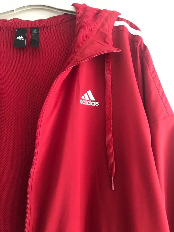 Adidas kapüşonlu, fermuarlı ve uzun kollu ceket, rahat kesimi ve yumuşak kumaşıyla spor ve günlük kullanım için uygundur.nir iki kez giyildi yeniden farksız yerim yok satıyorum
