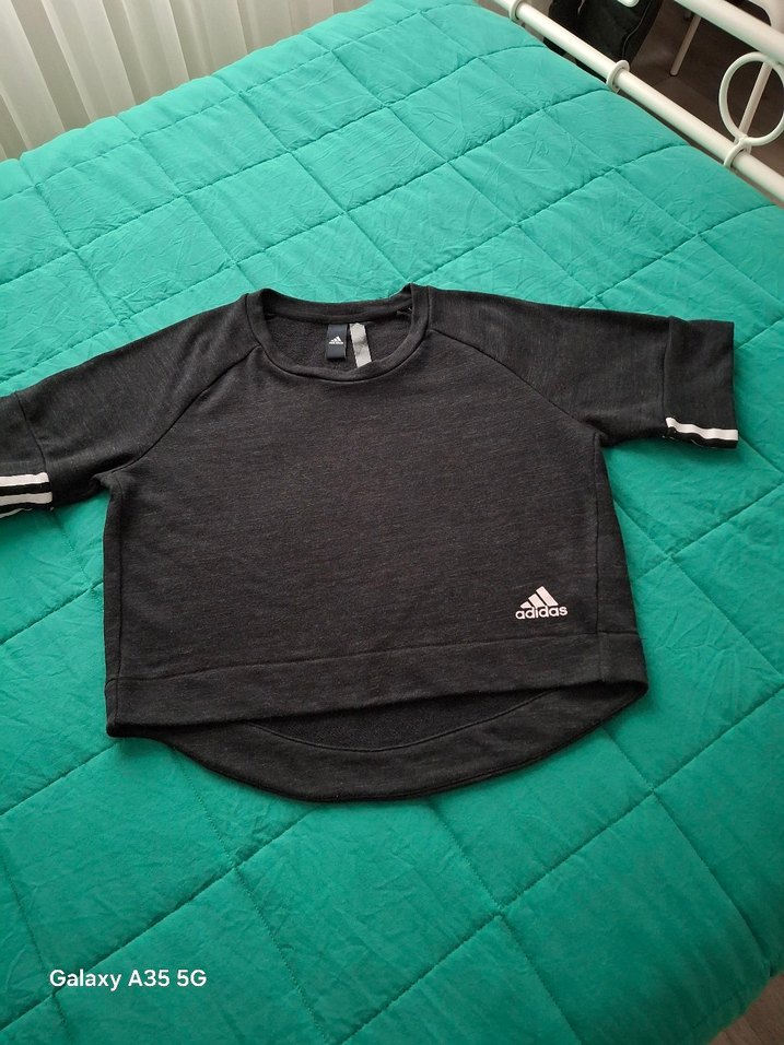 Kısa kollu, bol kesim ve yuvarlak yakalı sweatshirt. Yumuşak ve sıcak kumaştan, az kullanılmış, orijinal ürün.