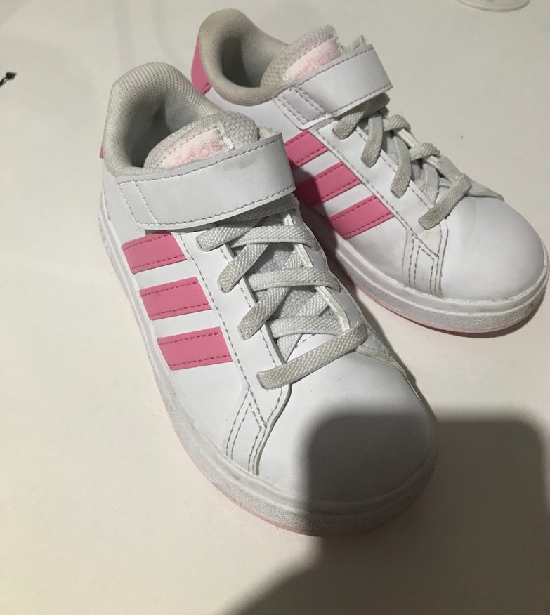 Pembe şeritli, cırt cırtlı kız çocuk spor ayakkabısı. Kauçuk tabanlı, rahat ve sokak stiline uygun.