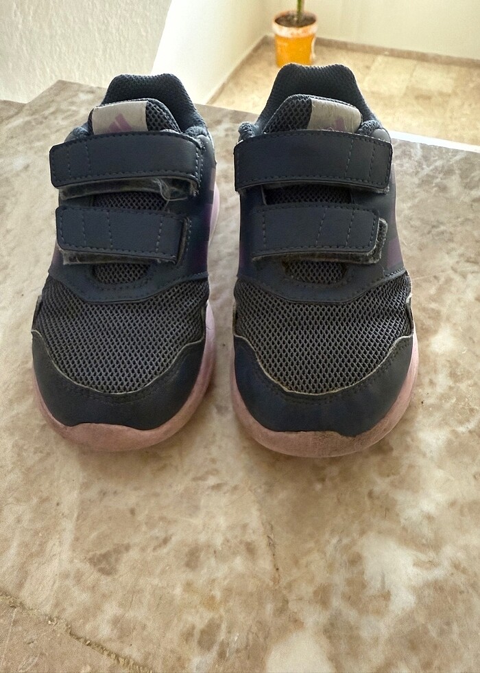 Orjinal adidas marka 27 numara kız çocuk ayakkabısı. Bir sezon giyildi ama temiz kullanılmıştır. Ucunda veya yanlarda açılma yoktur. Sadece kullanıma bağlı yıpranma vardır. Genel olarak temizdir.