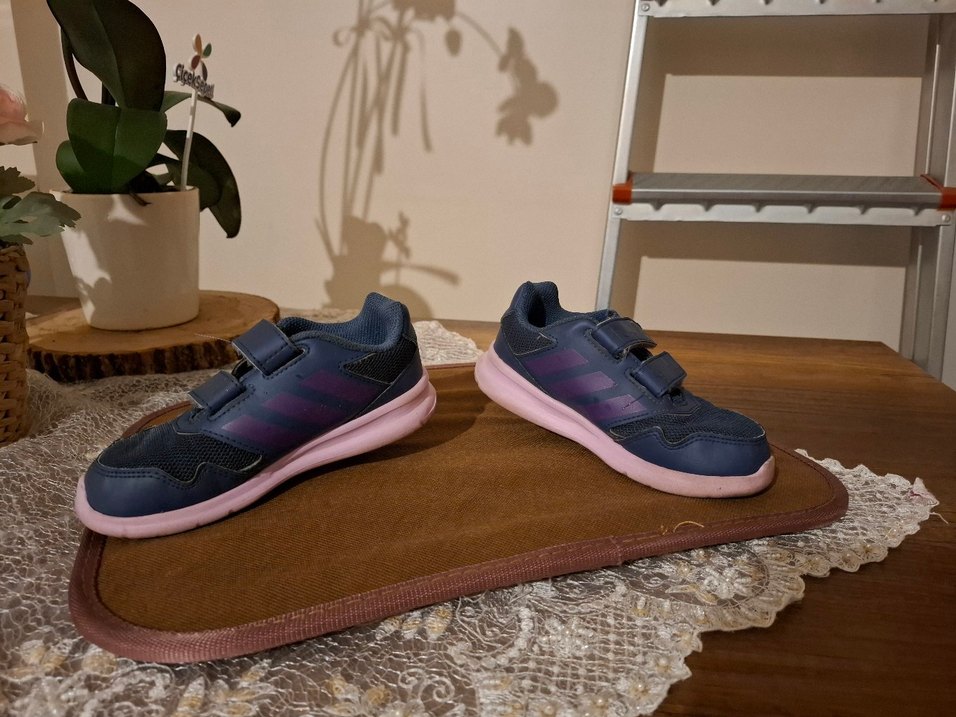 Koyu mor baskılı detaylara ve cırt cırtlı bantlara sahip kız çocuk spor ayakkabısı, kauçuk tabanlıdır.