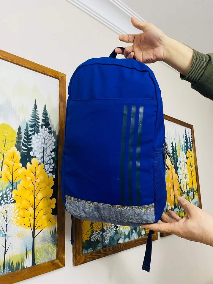 Renkli baskılı ve fermuarlı bölmeli, minimalist sokak stili mavi erkek sırt çantasıdır. Trendy ve rahat kullanıma uygundur.