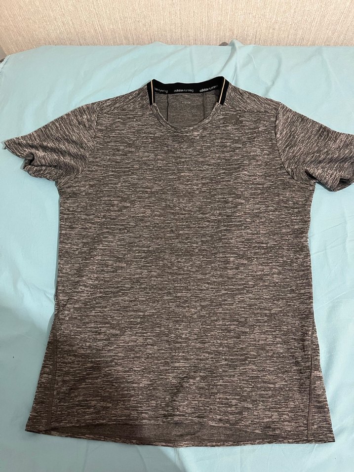 Adidas marka spor tişörtü. Gri renklidir. Bedeninin yazdığı bir yer bulamadım, ölçülerini koydum. Tahminen M beden. Herhangi bir deformesi yoktur. İhtiyaç fazlasıdır. #adidas #tişört