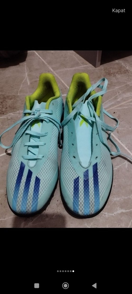 orijinal Adidas Pastel mavi renkte, bağcıklı ve kauçuk tabanlı erkek futbol ayakkabısı. Sokak stiliyle spor işlevselliğini birleştirir. ⚽ bir iki defa giydi ayağına küçük geldi bir daha girmedi tertemiz