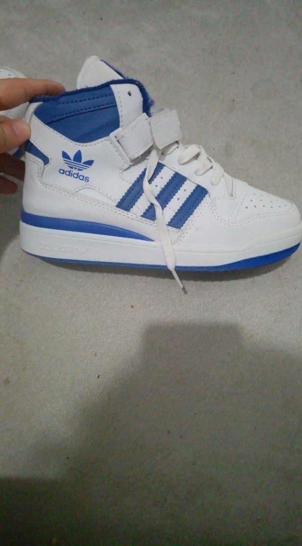 Adidas marka, mavi beyaz renkli, bantlı ve dolgu topuklu kadın spor ayakkabısıdır. Rahat ve şık bir sokak stili sunar.