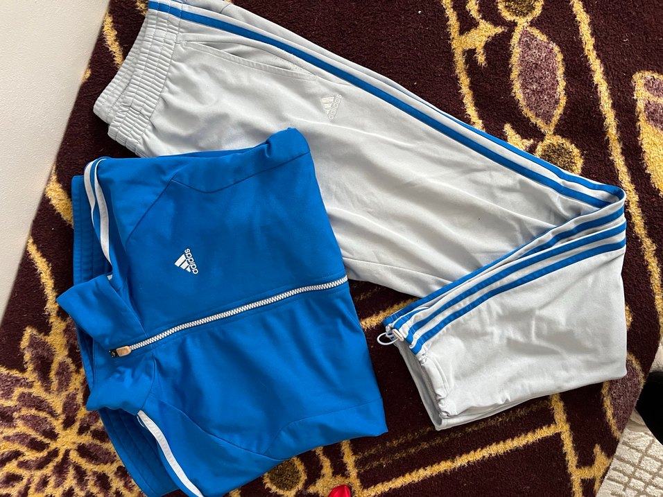 Adidas kadın eşofman takımı, fermuarlı ve fitted kesimlidir. Mavi ve gri renklerde, uzun kollu ve straplez yakalıdır. Sentetik kumaştan, spor ve şık görünüme uygundur. ♀️M/L beden