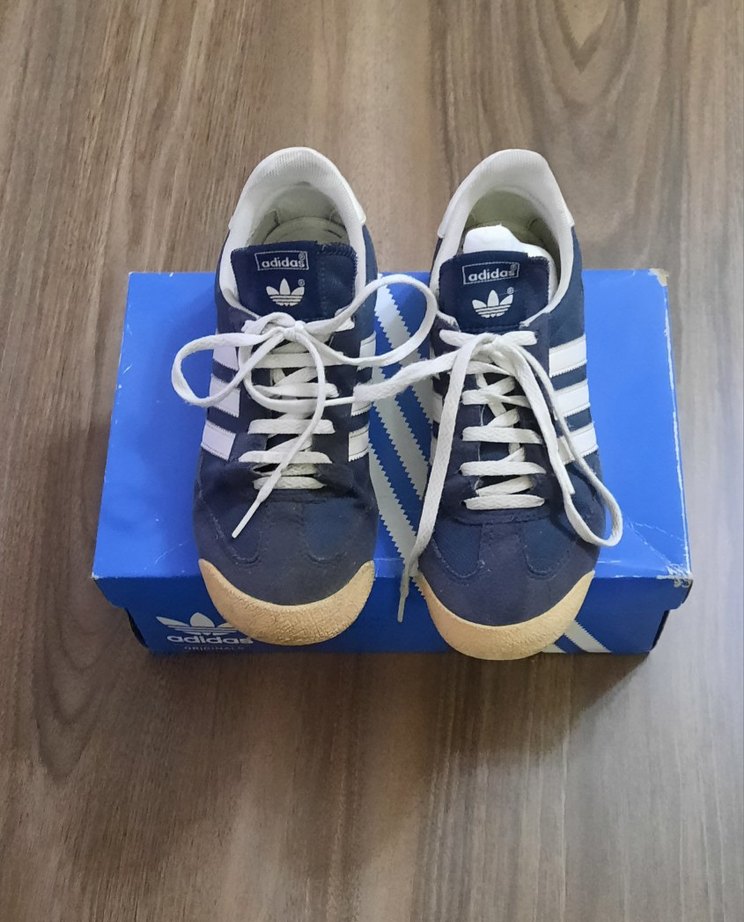Mavi Adidas kadın spor ayakkabısı, düz kauçuk tabanlı, sade tasarımlı. Spor ve sokak modasına uygun, rahat ve günlük kullanıma elverişli.